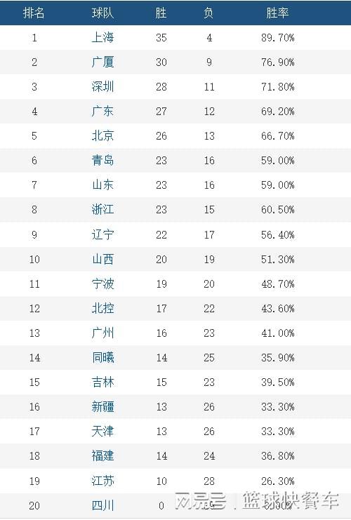 附:CBA积分榜最新排名