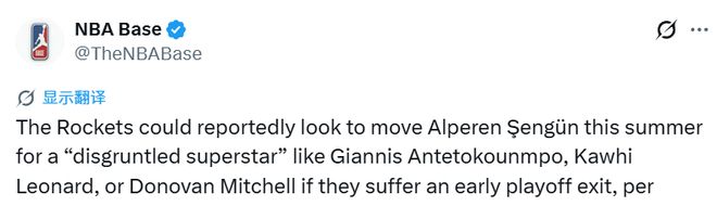 北京时间4月24日,据火箭记者威尔-吉洛里报道,倘若火箭季后赛早早出局,球队今夏可能会考虑交易送走申京,以此换取字母哥、科怀-莱昂纳德、多诺万-米切尔这类有可能离队的大牌球星。以下是他的报道——