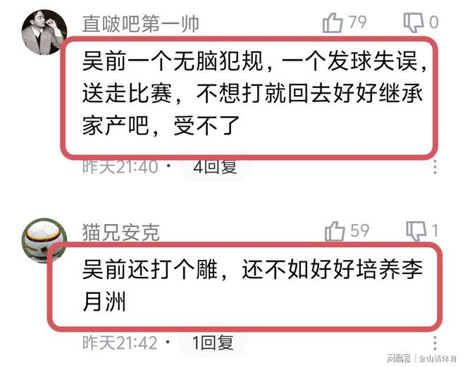 吴前关键时刻的两个低级错误,赛后也是被网友纷纷吐槽。“吴前一个无脑犯规,一个发球失误,送走比赛,不想打就回去好好继承家产吧,受不了。”;“吴前还打个鬼,还不如好好培养李月洲。”;“吴前 你,就别出来祸害了”;“又是吴前!哎……!被各队点名单打成了常规操作!”;“吴全,赶紧退役吧!”……