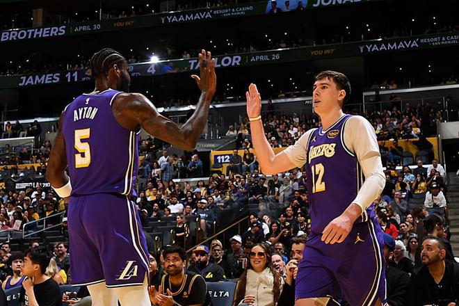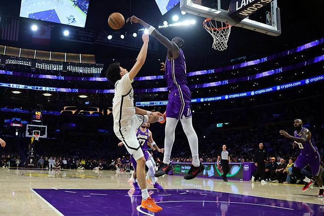 本场比赛中,湖人的先发中锋德安德烈-艾顿(DeAndre Ayton)的出场时间并不多,但是其实整体表现还是不错的。艾顿全场出场21分56秒,投篮3中3,罚球4中3,得到了9分7篮板1抢断3盖帽的数据,还有2次失误和2次犯规,正负值为+5。艾顿在进攻端还是没有办法得到更多的出手机会,但是他的进攻效率相当不错,还是在对手内线制造了一些威胁的。除此之外,艾顿在篮板保护方面的表现也是值得肯定的,而且他在内线防守和护筐方面的表现更是算得上可圈可点。看起来篮网先发中锋尼古拉斯-克拉克斯顿(Nicolas Claxton)在艾顿面前得到了一些分数,但是实际上这也和湖人在防守策略方面的选择相关。艾顿不得不被换防,而其他球员又没有足够出色的内线防守能力,这才是克拉克斯顿得到不少分数的关键因素。