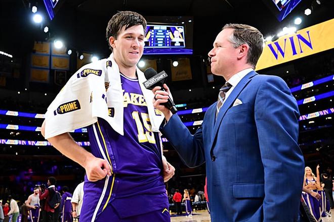 本场比赛中,湖人的先发后场球星奥斯汀-里夫斯(Austin Reaves)的表现还是相当不错的。里夫斯全场出场40分04秒,投篮13中7,三分线外7中4,罚球11中8,拿下了26分8篮板5助攻1抢断的数据,还有2次失误和2次犯规,正负值更是达到了全场最高的+26。里夫斯在比赛前三节的表现一塌糊涂,仅以8中3的效率得到了11分,在上半场比赛中更是只得到了4分。没想到到了比赛最后一节,里夫斯以5中4的效率豪取15分,其中在三分线外更是4中4。里夫斯在最后一节大杀四方,展现出了自己超强的得分能力和投射能力,这也是球队能够在比赛最后一节建立起比赛优势并且比较顺利地拿下胜利的关键因素。当然了,里夫斯如果能够早一点完成爆发,打出第四节这样的表现,那么湖人可能也会赢得更加轻松,可能也会更早地建立起比赛优势。