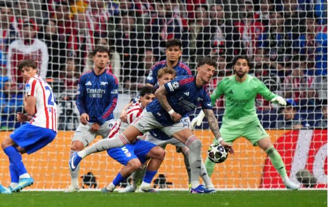 和前一天晚上巴黎对拜仁那场九球大戏一样,裁判在点球上的判罚简直离谱到犯规。阿森纳靠着哲凯赖什的点球掌握着节奏,结果下半场VAR介入,判定本怀特手球,给了马竞一个点球。